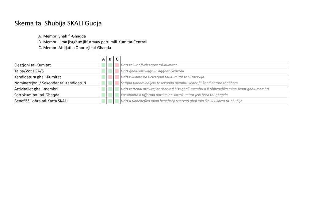 L-iskema ta’ sħubija mal-Għaqda iġġib l-isem ta’ Karta SKALI. Bil-Karta SKALI, il-membri tal-Għaqda għandhom aċċess għal diversi skontijiet u/jew promozzjonijiet li l-Kumitat iħabbar minn żmien għal żmien.